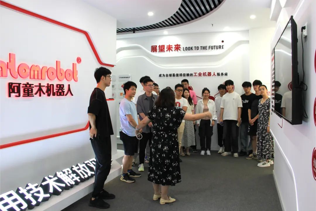 參觀期間,學(xué)生們現(xiàn)場走進阿童木機器人智能制造生產(chǎn)車間。一個個零部件到整機,成品測試,樣機演示......車間內(nèi)高度自動化的智能制造系統(tǒng),讓學(xué)生們對阿童木機器人產(chǎn)品與服務(wù)宗旨有了更深刻的感受。
