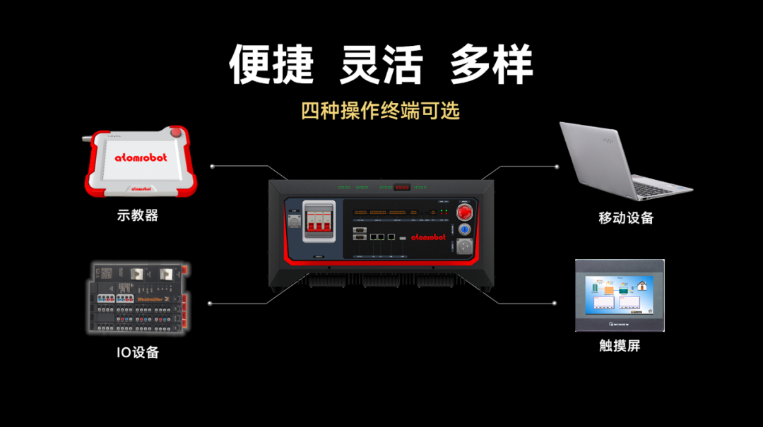 在內(nèi)部的功能模塊方面,AtomBox完成了包括輸入輸出、機(jī)器人控制和伺服控制、伺服功率模塊三個(gè)模塊的高度集成化。與此同時(shí),整個(gè)機(jī)器人控制柜重量同比降低,AtomBox整機(jī)的重量?jī)H16.8kg,對(duì)一個(gè)正常的成年人來(lái)說(shuō),可輕松完成控制柜的部署工作。