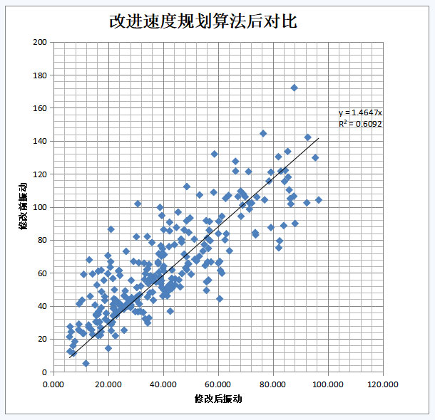 同時(shí)我們還分析了在不同變量(軌跡長(zhǎng)度、平滑比例、運(yùn)動(dòng)規(guī)律類(lèi)型、負(fù)載)下的振動(dòng)表現(xiàn),試圖找出在不同環(huán)境下對(duì)運(yùn)動(dòng)的最優(yōu)結(jié)果。