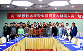 天津大學(xué)黃田教授為阿童木機(jī)器人進(jìn)行“工業(yè)智能前沿技術(shù)和并聯(lián)機(jī)器人設(shè)計(jì)制造技術(shù)”技術(shù)講座。